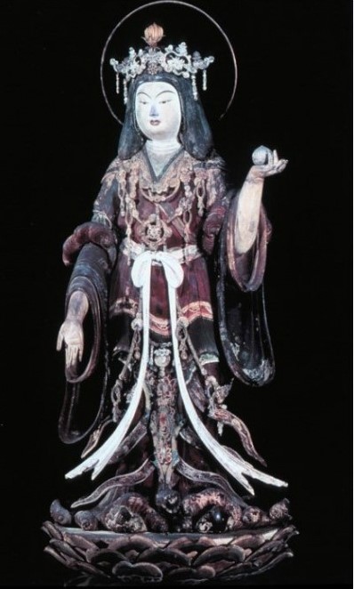 그나저나 공덕천은 이 우화에만 나오는 비유적 존재가 아니라 예부터 인도 신화와 불교 설화에 나오는 여신이다. 길상천(吉祥天)이라는 이름으로 더 잘 알려져 있는데, 부귀와 행운을 관장하는 아름다운 여신이다. 우리나라에서는 길상천을 따로 경배한 경우가 잘 없어서 길상천 그림을 찾기 힘들지만, 일본에서는 기치조텐(길상천의 일본식 발음)이 중요한 숭배 대상이어서 길상천을 묘사한 그림과 조각이 많이 있다. 맨 위에 있는 메이지 시대의 그림은 아무래도 아래에 있는 가마쿠라 시대의 나무 조각을 보고 그린 것이 아닌가 싶다. 관세음보살상과는 다르고 도교적 선녀의 모습과도 다른 도상이 무척 색다르고 신비롭게 느껴진다.