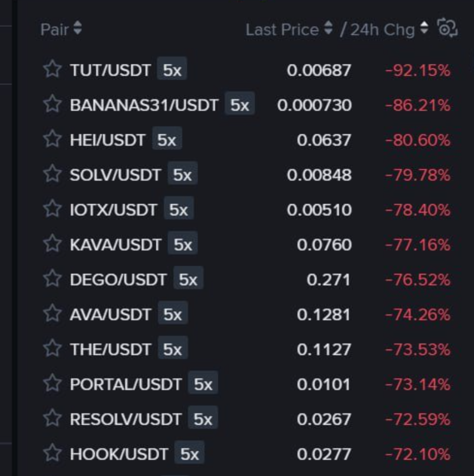 코인 1등 거래소인 바이낸스에서 알트코인 -92.15% 나옴.