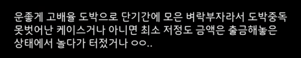 운좋게 고배율 도박으로 단기간 벼락부자라 도박중독에서 못 벗어난 케이스.