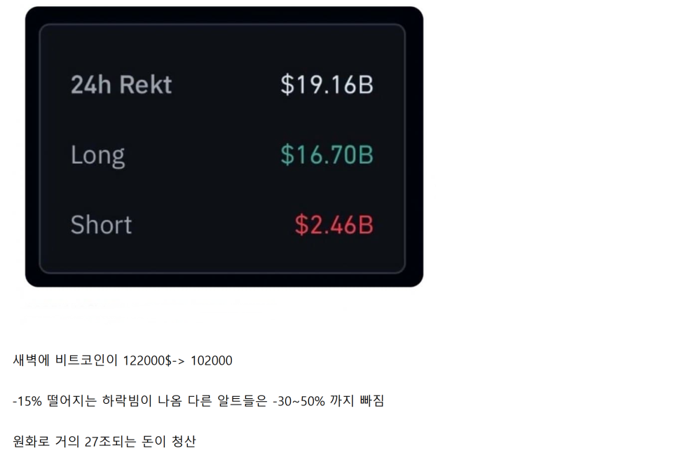 새벽에 비트코인이 122000달러에서 102000달러로.
