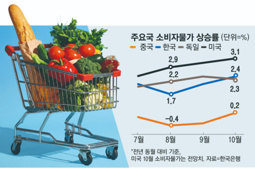 한국도 최근 달러당 원화값이 1470원대까지 급락하며, 주요국과 비슷하게 물가가 오르고 있다. 한국의 소비자물가 상승률은 지난 8월 1.7%에서 10월 2.4%까지 오른 상황이다.