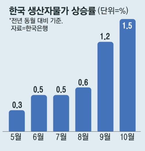 韓 2.4%, 생산자물가 1.5%↑