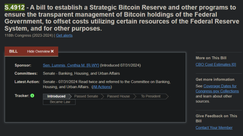 올해 초, 미국 상원의원 루미스는 5년간 100만개의 비트코인을 전략적 비축자산으로 매입하는 법안을 발의했다.
