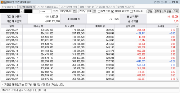 40억을 매수, 매도했으니 원금 3,000만 원으로 한 달 동안 돈을 약 130번 돌린 셈이다.